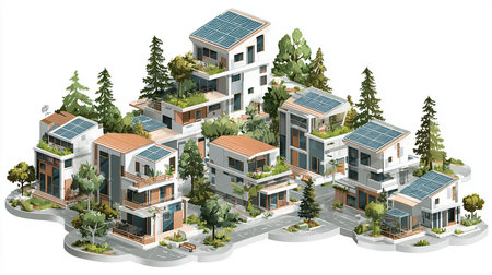 Eco-friendly architecture background with sustainable design elements. Great for green architecture, energy-efficient buildings, and smart cities.