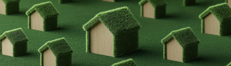 Serene landscape with miniature green houses amidst lush foliage for eco friendly design inspiration