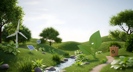Eco friendly concept. Alternative energy sources. Green environment. 3D rendering