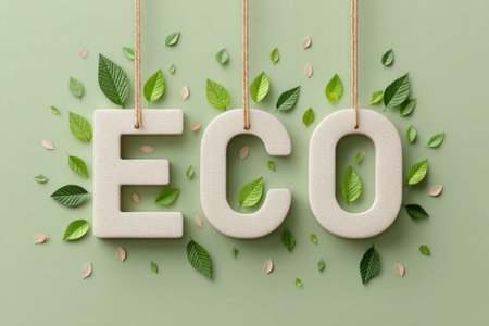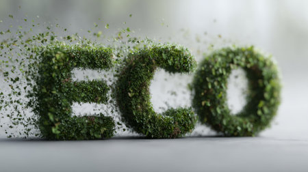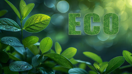 This image showcases a vibrant arrangement of lush greenery with the word ECO spelled out in natural materials, symbolizing sustainability and harmony with nature.