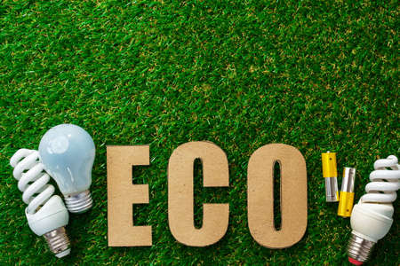 Eco energy saving light bulbs on grass background