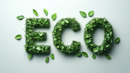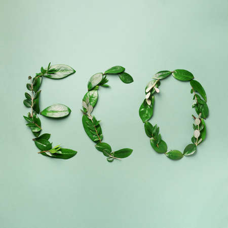 The word 'eco' made of green leaves, symbolizing environmental sustainability and nature.