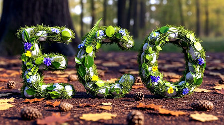 This vibrant image features letters formed from lush moss, symbolizing a commitment to ecology and sustainability, surrounded by rich greenery.