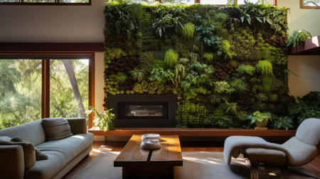 Interior of a modern living room with furniture and plants in pots