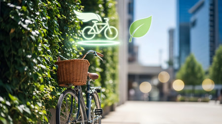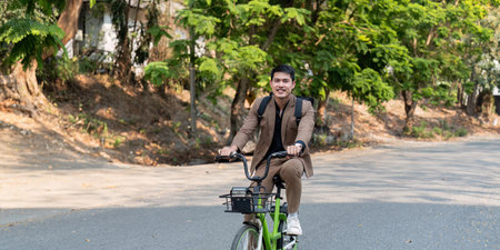 Eco Friendly Businessman Riding Bicycle to Work in Urban Setting Promoting Sustainable and Healthy Lifestyle Choices