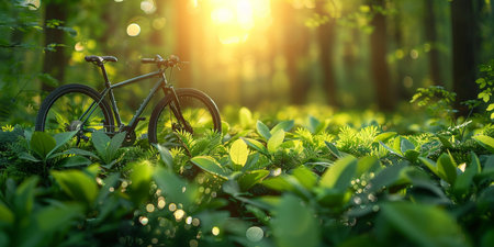 Concept or conceptual group of green forest tree on dry ground background as sign of bicycle. A 3d illustration metaphor for recreation, health, sport, ecological transportation or work