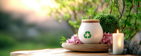 Zero-waste, plastic-free kitchen and household with coconut fiber, bamboo and reusable products for eco-friendly lifestyle.