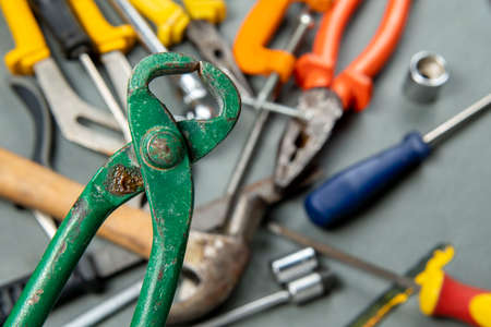 Background with many different tools for DIY, construction, renovation