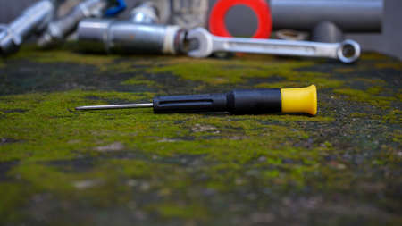 old tools to work and repair against a dark background