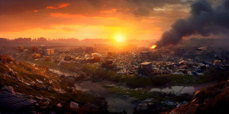 Air pollution caused by smoke emission, apocalyptic panorama. AI-generated.