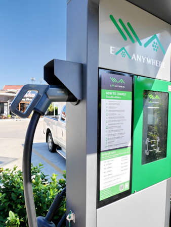 Bangkok, Thailand - May, 02, 2022 : Electric car charging station for charge EV battery. Plug for vehicle with electric engine. EV charger at Bangkok, Thailand.