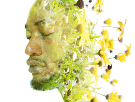 Yellow flowers combined with a portrait of an African American man
