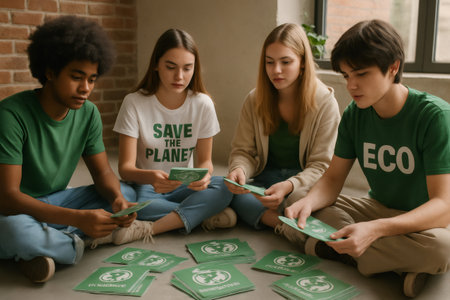 Group of young environmental activists planning an eco friendly initiative, focusing on sustainability and climate change awareness
