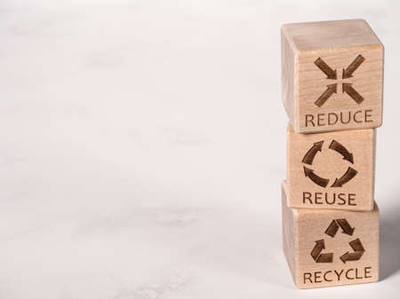 Reduce, reuse and recycle symbols on wood blocks as resource conservation concept