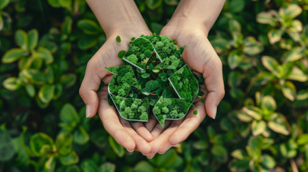 An eco friendly sign made of green foliage surrounded by lush plants, emphasizing environmental sustainability and green living. High quality photo
