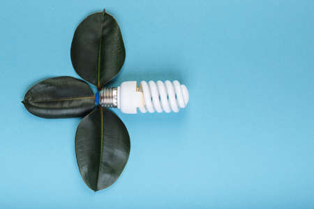 Energy-saving fluorescent lamp with green leaf, ECO energy concept
