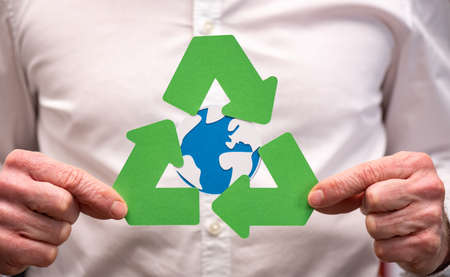 Recycling symbol with arrows on an ecological background . The recycling symbol for ecological design and a waste-free lifestyle.