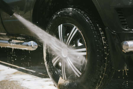 Car washing. Cleaning car using high pressure water.