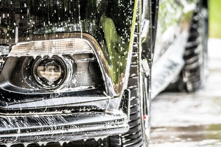 Car close-up. Car wash. Cleaning agent.