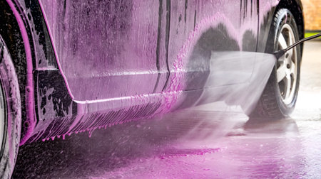 Car Wash with Pink Foam and High Pressure Water