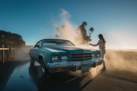Vintage Car Wash at Golden Hour