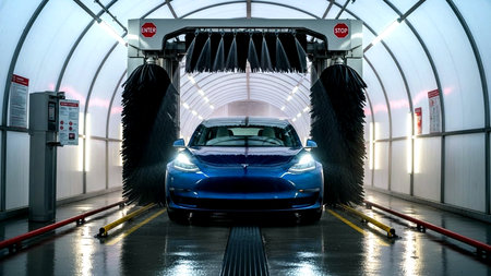 Automatic car wash service in action
