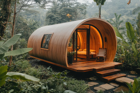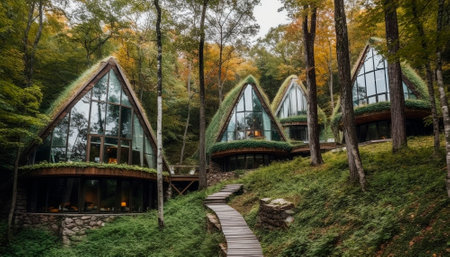 sustainable eco-lodge in the heart of the forest, created with generative ai