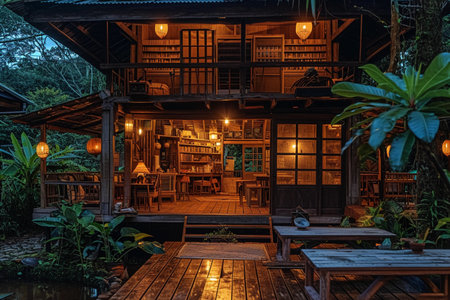 Jungle cafe thailand forest. vacation restaurant. Generate AI
