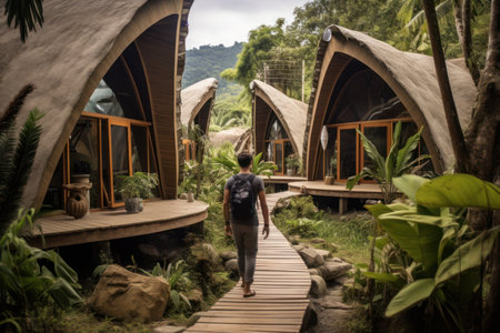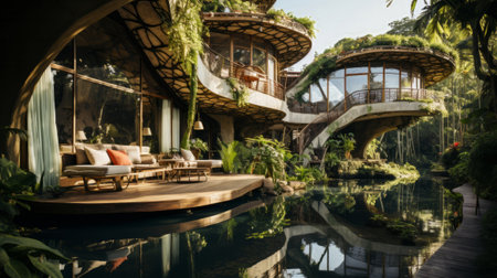 eco-friendly resort, surrounded by greenery and natural beauty, created with generative ai