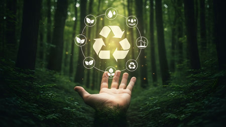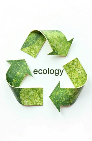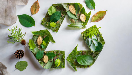 A visually striking banner featuring a green recycling symbol composed of lush leaves and natural textures, set against a clean white background, ideal for promoting environmental awareness and