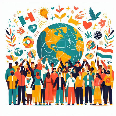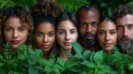 Multicultural group of happy and diverse people from around the globe coming together in unity to celebrate earth day. Showing their commitment to environmental conservation and sustainability.