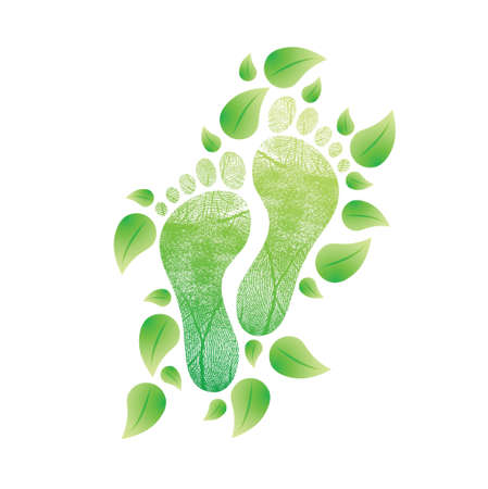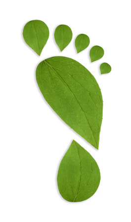 A leafy footprint is shown on a white background. The footprint is surrounded by leaves and branches, creating a natural and organic feel. Concept of growth and renewal