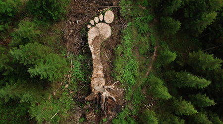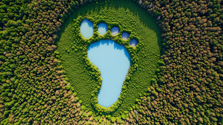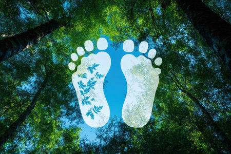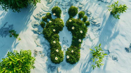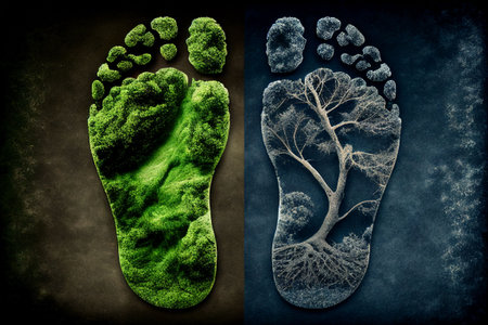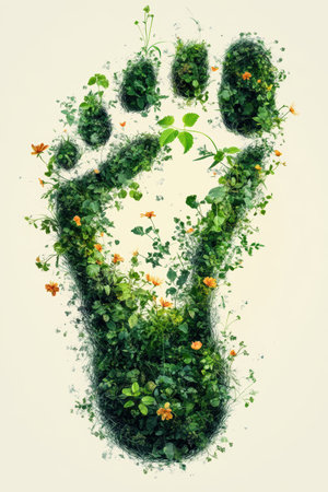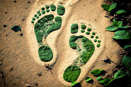 An AI generated illustration of human footprints showing nature as a sign of environmental awareness and a green future