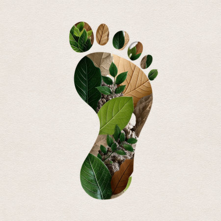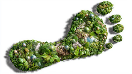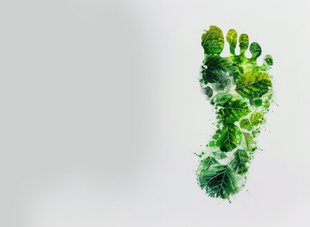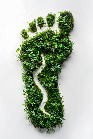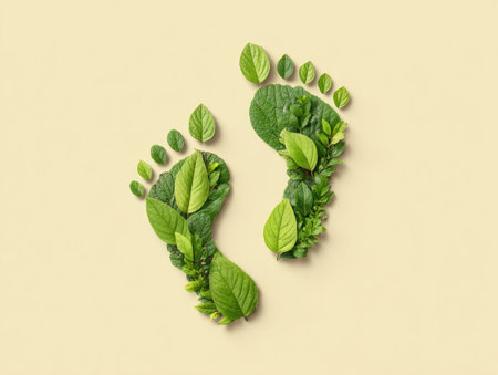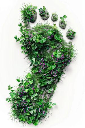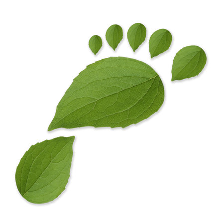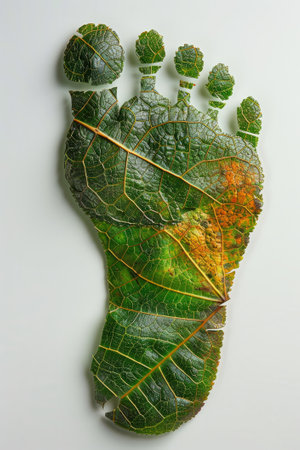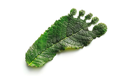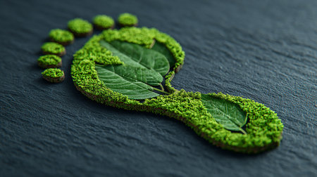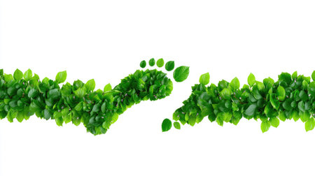 A footprint creatively crafted using various shades of green leaves showcases a unique blend of art and environmental awareness, promoting sustainability and nature.