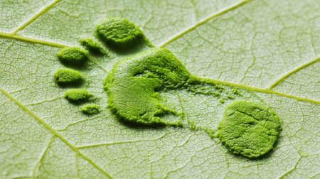 Green footprint on leaf symbolizes environmental awareness and sustainability. This captures essence of eco friendliness and importance of protecting nature
