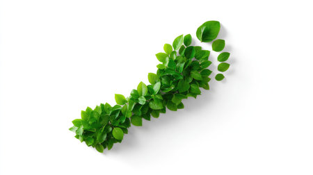 This image showcases a creative representation of a footprint made of fresh green leaves, symbolizing eco-friendliness and nature's beauty.