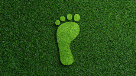 A vibrant green footprint set against a lush grass backdrop, symbolizing eco-consciousness and sustainable practices while encouraging environmental awareness and care for nature.