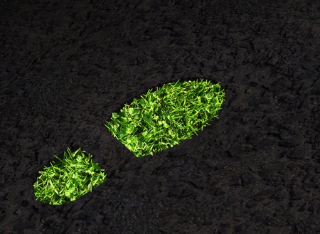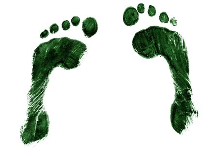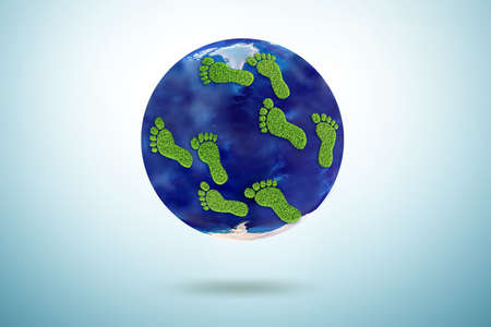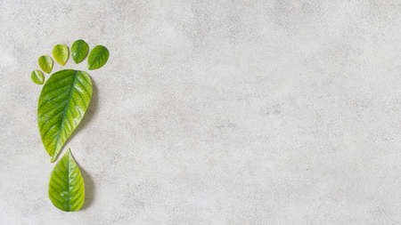 Concept of environmental protection. Green footprint in the shape of a human foot.Carbon footprint.