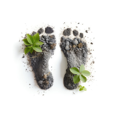 Two footprints filled with lush green plants symbolize the concept of climate footprint, emphasizing sustainability and environmental awareness.