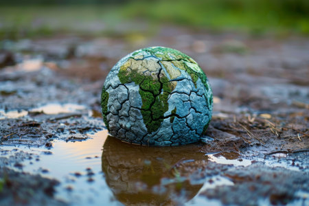 A lone tree thriving atop a globe, set against the backdrop of cracked, dry earth, symbolizes hope and the importance of reforestation and environmental conservation.