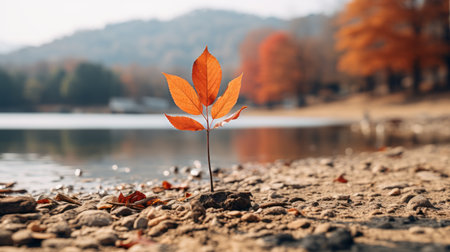 Autumn's Essence: A Beautiful Dry Leaf Resting on the Ground. Generative AI