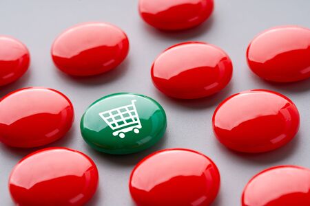 Online shopping, ecommerce, internet shopping concept. Shopping cart icon on green keyboard key