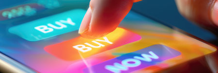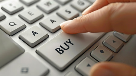 Online Purchase: Close-Up on Digital Buy Button Tap