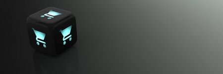 Shopping concept of black cube with shiny trolley symbol against dark background