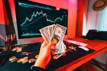 Bitcoin on a home computer chart and money and investment