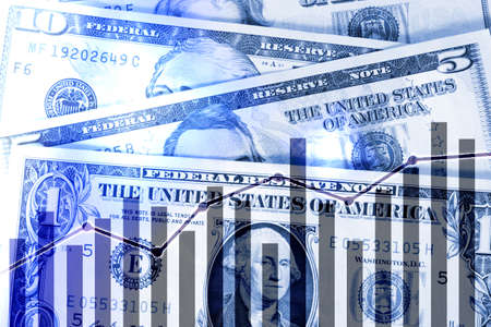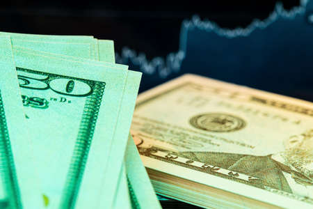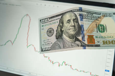 US dollar bills an backgrund with stock martket chart, Investment and forex trading risk