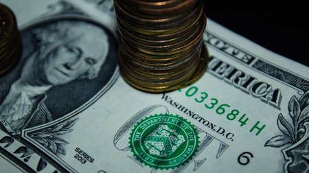Dollars and coins on the table. The concept of financial crisis