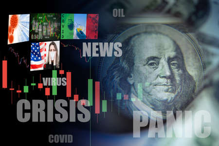 Panic due to the onset of a crisis in the economy. Concept - covid virus caused panic on the stock exchange. Pandemic news has ushered in downturn. Concept - economy has entered a period of recession