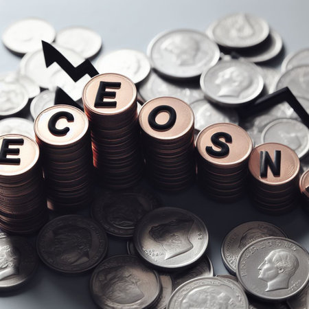 Coins stacked on each other with the word ECONOMS