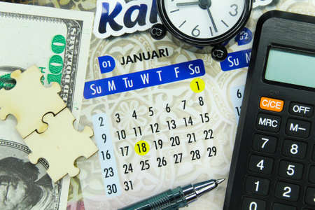 close up of calendar on the table for planner,business,organization,management schedule, calender concept.